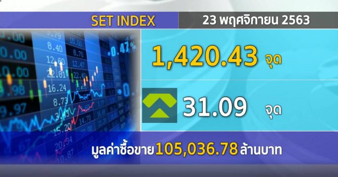 ตลาดหลักทรัพย์ปิดวันนี้ที่ระดับ 1,420.43 จุด เพิ่มขึ้น 31.09 จุด (+2.24%) มูลค่าการซื้อขาย 105,036.78 ล้านบาท
