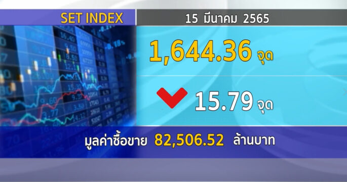 ตลาดหลักทรัพย์ ปิดวันนี้ที่ระดับ 1,644.36 จุด ลดลง 15.79 จุด (-0.95%) มูลค่าการซื้อขาย 82,506.52 ล้านบาท หุ้นไทยวันนี้ภาคบ่ายย่อตัวลงมาต่อเนื่องจากช่วงเช้า ปัจจัยหลักมาจากแรงขายหุ้นขนาดใหญ่ในกลุ่มพลังงาน หลังราคาน้ำมันดิบร่วงกว่า 6%