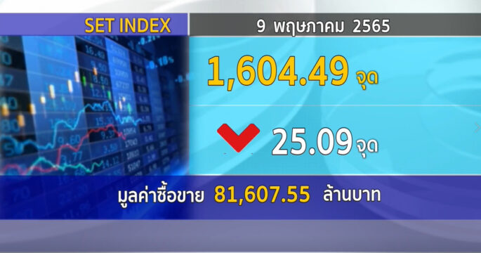 ตลาดหลักทรัพย์ ปิดวันนี้ที่ระดับ 1,604.49 จุด ลดลง 25.09 จุด (-1.54%) มูลค่าการซื้อขาย 81,607.55 ล้านบาท ตลาดหุ้นไทยวันนี้ปรับตัวลงตามภูมิภาค ยังกังวลเฟด