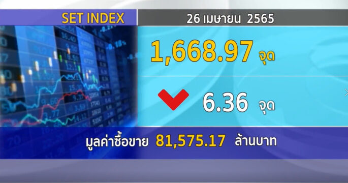 ตลาดหลักทรัพย์ ปิดวันนี้ที่ระดับ 1,668.97 จุด ลดลง 6.36 จุด (-0.38%) มูลค่าการซื้อขายราว 81,575.17 ล้านบาท ตลาดหุ้นไทยวันนี้แกว่งผันผวน ส่วนหนึ่งจากค่าเงินบาทอ่อนค่ามาก ประกอบกับกังวลเฟดปรับทิศนโยบายการเงินเร็ว-แรง