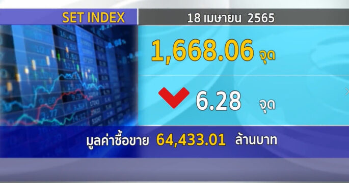 ตลาดหลักทรัพย์ ปิดวันนี้ที่ระดับ 1,668.06 จุด ลดลง 6.28 จุด (-0.38%) มูลค่าการซื้อขาย 64,433.01 ล้านบาท ตลาดหุ้นไทยวันนี้แกว่งตัวลง ตามทิศทางตลาดหุ้นเอเชีย รับแรงกดดันเงินเฟ้อเร่งตัวสูง หนุนเฟดเร่งขึ้นดอกเบี้ย