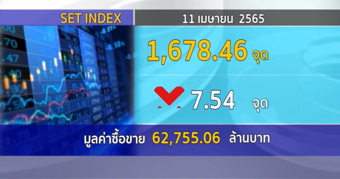 ตลาดหลักทรัพย์ ปิดวันนี้ที่ระดับ 1,678.46 จุด ลดลง 7.54 จุด (-0.45%) มูลค่าการซื้อขาย 62,755.06 ล้านบาท ตลาดหุ้นไทยวันนี้ปรับลดลงตามตลาดในภูมิภาค กังวลโควิด-19 ในจีน ทำให้ยังเห็นการล็อกดาวน์ต่อเนื่อง