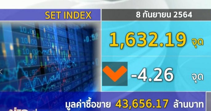 หุ้นไทยเข้าสู่ภาวะพักฐาน ดัชนีช่วงเที่ยงเคลื่อนไหวอยู่ที่ 1,632.19 จุด ลดลง 4.26 จุด มูลค่าซื้อขาย 43,656.17 ล้านบาท