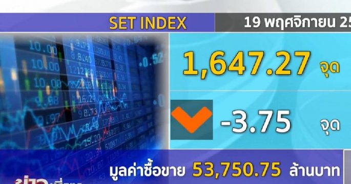 ภาวะตลาดหุ้นไทยภาคเช้า ดัชนีแกว่งตัวกรอบแคบๆ ดัชนีช่วงเที่ยงอยู่ที่ 1,647.27 จุด ลดลง 3.75 จุด มูลค่าซื้อขาย 53,750.75 ล้านบาท