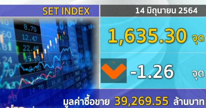 ดัชนีหุ้นไทยเปิดบวก 6.24 จุด แต่มีความกังวลเลื่อนฉีดวัคซีนและข่าวใหญ่ ธนาคารกลางสหรัฐจะประชุมวันที่ 16-17 มิ.ย. ดัชนีช่วงเที่ยงอยู่ที่ 1,635.30 จุด ลดลง 1.26 จุด มูลค่าซื้อขาย 39,269.55 ล้านบาท