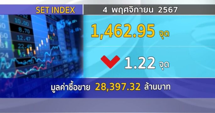 SET ปิดวันนี้ที่ 1,462.95 จุด ลดลง 1.22 จุด (-0.08%) มูลค่าซื้อขายราว 28,418.43 ล้านบาท