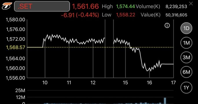 หุ้นไทยแกว่งตัวลดลง 0.83 จุด
