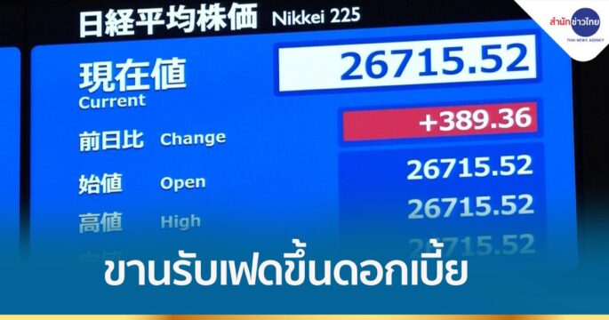 กรุงเทพฯ 13 พ.ค. – หุ้นไทย-ตลาดหุ้นเอเชีย เปิดบวกแรงหนุนจากการที่สหรัฐฯ และจีนบรรลุข้อตกลงการค้า ด้านเงินบาทอ่อนค่า หุ้นไทย เปิดเช้านี้ (13 พ.ค.) บวก 20 จุด ตามตลาดหุ้นเอเชียที่เปิดบวกแรงหนุนจากการที่สหรัฐฯ และจีนบรรลุข้อตกลงการค้า ขณะที่นักลงทุนจับตาการเปิดเผยดัชนีราคาผู้บริโภค (CPI) ของสหรัฐฯ ในวันนี้ เพื่อประเมินแนวโน้มเงินเฟ้อและทิศทางอัตราดอกเบี้ยของธนาคารกลางสหรัฐฯ (เฟด) ขณะเดียวกัน นักลงทุนยังจับตาการกล่าวสุนทรพจน์ของเจอโรม พาวเวล ประธานเฟด ในการประชุม Thomas Laubach Research Conference ซึ่งจัดขึ้นที่กรุงวอชิงตัน ดีซี ในวันพฤหัสบดีที่ 15 พ.ค.นี้ เวลา 08.40 น. ตามเวลาสหรัฐฯ หรือตรงกับเวลา 19.40 น.ตามเวลาไทย ดัชนีนิกเกอิตลาดหุ้นญี่ปุ่นเปิดที่ระดับ 38,149.53 จุด เพิ่มขึ้น 505.27 จุด หรือ +1.34%, ดัชนีเซี่ยงไฮ้คอมโพสิตตลาดหุ้นจีนเปิดที่ระดับ 3,386.23 จุด […]