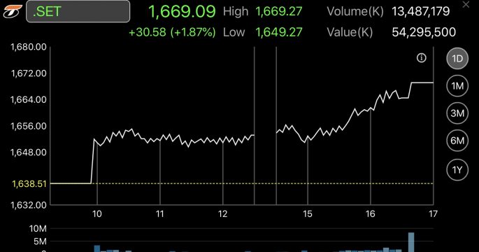 หุ้นไทยปิดบวก 30.58 จุด รับแรงซื้อหุ้นขนาดใหญ่ หลังตลาดหุ้นไทยพักฐานมาระยะหนึ่ง