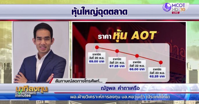 AOT ราคาปรับลงมาซึมซับข่าวลบไปเรียบร้อยแล้ว วันนี้หากมีการ Forced Sell บ้าง เชื่อว่าน่าจะเป็นชอตสุดท้ายของขาลง ใครมีแนะนำไม่ต้องขาย ให้ถือต่อ