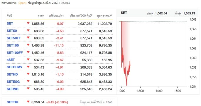 กรุงเทพฯ 27 มิ.ย. – ตลาดหุ้นไทยเปิดตลาดเช้านี้ร่วงกว่า 10 จุด หลังการเมืองกดดัน แม้ตลาดหุ้นสหรัฐและเอเชียเปิดบวกก็ตาม โดย เมื่อเวลา 11.49 น. ดัชนี SET มาอยู่ที่ 1,090 จุด ลดลง 15.89 จุด นายณัฐพล คำถาเครือ ผู้อำนวยการฝ่ายวิเคราะห์การลงทุน บล.หยวนต้า กล่าวว่า การเมืองไทยเป็นปัจจัยกดดันดัชนีหุ้นเช้านี้ ทั้งเรื่องขัดแย้งไทย –กัมพูชา และเรื่องชุมนุมทางการเมืองในวันพรุ่งนี้ เพื่อเรียกร้องนายกรัฐมนตรีลาออก แต่จะเห็นได้ว่ามีผลให้หุ้นไทยลดลงไม่มากนัก หลังจากผ่านพ้นแรงกดดันระดับสูงตั้งแต่วันเปิดคลิปเสียงสนทนาระหว่างผู้นำ 2 ประเทศ ที่ทำให้ตลาดหุ้นไทยปรับฐานลงไปถึง 25% ยิ่งหากการชุมนุมผ่านพ้นไปได้ดี ไม่มีภาวะแทรกซ้อน ก็จะกระทบการลงทุนระยะสั้นๆ เท่านั้น จากนั้นก็ต้องตามดูว่าการเปลี่ยนแปลงจะมีหรือไม่ แบบช็อตต่อช็อต ในขณะที่สัปดาห์หน้าก็ต้องติดตามว่าวันที่ 1 ก.ค.68 ศาลรัฐธรรมนูญจะมีคำสั่งให้ น.ส.แพทองธาร ชินวัตร นายกรัฐมนตรี หยุดปฏิบัติหน้าที่หรือไม่ กรณีคลิปเสียง อย่างไรก็ตาม มีข่าวดีคือการเจรจาภาษีกับสหรัฐ ซึ่งนายพิชัย […]