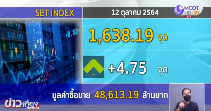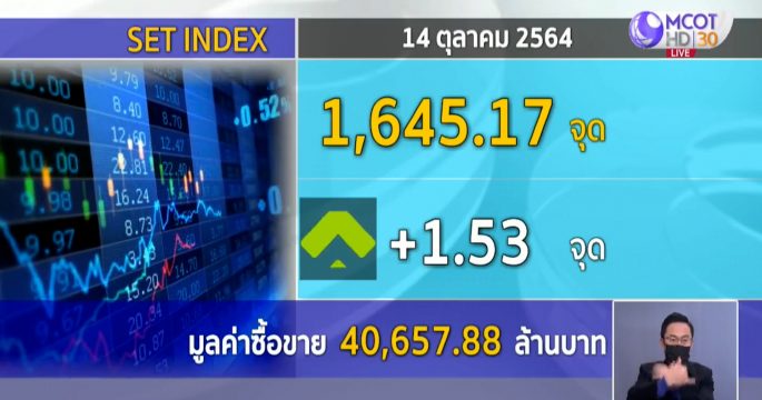 ตลาดหุ้นไทยภาคเช้า ดัชนีขยับขึ้นได้ตามแรงหนุนรัฐบาลเตรียมเปิดประเทศวันที่ 1 พฤศจิกายนนี้ รวมถึงราคาน้ำมันดิบทรงตัวระดับสูง แม้กังวลเรื่องการปรับมาตรการ การเงินของธนาคารกลางสหรัฐ ดัชนีช่วงเที่ยงอยู่ที่ 1,645.17 จุด +1.53 จุด มูลค่าการซื้อขาย 40,657.88 ล้านบาท