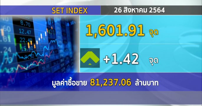 ตลาดหลักทรัพย์ ปิดวันนี้ที่ระดับ 1,601.91 จุด เพิ่มขึ้น 1.42 จุด (+0.09%) มูลค่าการซื้อขาย 81,237.06 ล้านบาท แกว่งทรงตัว-วอลุ่มแผ่วช่วงรอประชุมประจำปีของเฟด