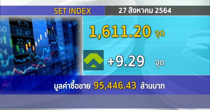 ตลาดหลักทรัพย์ ปิดวันนี้ที่ระดับ 1,611.20 จุด เพิ่มขึ้น 9.29 จุด (+0.58%) มูลค่าการซื้อขาย 95,446.43 ล้านบาท