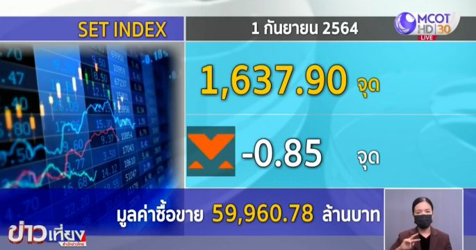 ตลาดหุ้นไทยวันนี้มีทั้งช่วงบวกและลบ จากแรงขายทำกำไร ล่าสุดเคลื่อนไหวที่ 1,637.90 จุด -0.85 จุด มูลค่าการซื้อขาย 59,960.78 ล้านบาท