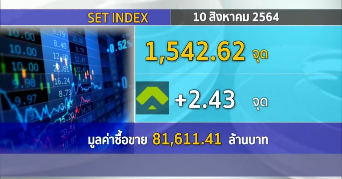 ดัชนีหุ้นไทยภาคเช้า บวกได้ตามตลาดหุ้นในภูมิภาค แม้เศรษฐกิจในประเทศที่ได้ผลกระทบจากการแพร่ระบาดเชื้อโควิด-19 ในประเทศ และ Fund flow ที่ไหลออก ดัชนีช่วงเที่ยงอยู่ที่ 1,536.83 จุด บวก 15.11 จุด มูลค่าซื้อขาย 32,134.80 ล้านบาท