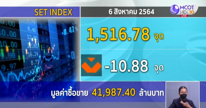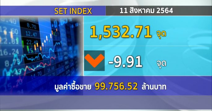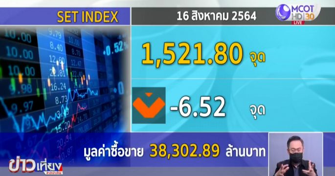 ตลาดหลักทรัพย์ ปิดวันนี้ที่ระดับ 1,521.72 จุด ลดลง 5.94 จุด (-0.39%) มูลค่าการซื้อขาย 82,728.30 ล้านบาท ตลาดหุ้นผันผวนหลังเงินบาทอ่อนค่าเร็วเป็นผลจากโควิดในประเทศระบาดหนัก นักลงทุนจึงขายลดความเสี่ยงเพื่อรอดูสถานการณ์