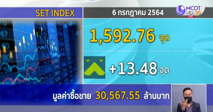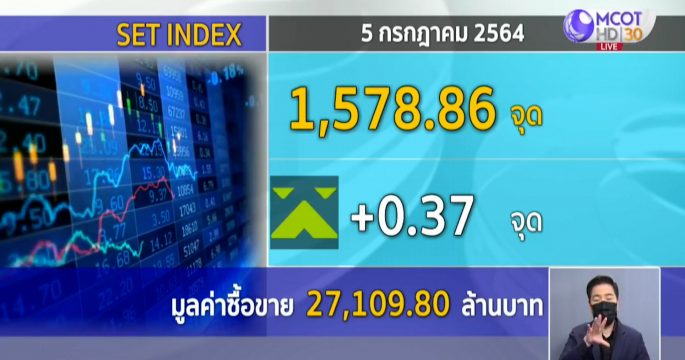 ตลาดหุ้นไทยเปิดมาต้นสัปดาห์ ดัชนีหุ้นไทยยังคงแกว่งตัว เนื่องจากมีปัจจัยลบรุมเร้าจากตัวเลขผู้ติดเชื้อโควิด-19 ที่ยังพุ่งสูงขึ้น โดยหุ้นไทยช่วงเช้าย่อลงมา แต่ช่วงเที่ยงกลับมายืนบวกได้ ดัชนีอยู่ที่ 1,578.86 จุด +0.37 จุด มูลค่าการซื้อขาย 27,109.80 ล้านบาท