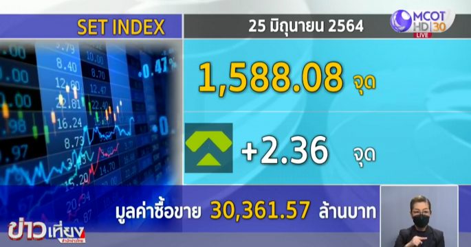 หุ้นไทยวันนี้ เปิดตลาดบวกเล็กน้อย ดัชนีช่วงเที่ยงอยู่ที่ 1,588.08 จุด +2.36 จุด มูลค่าการซื้อขาย 30,361.57 ล้านบาท ตอบรับเรื่องสหรัฐบรรลุข้อตกลงการลงทุนทางเศรษฐกิจ