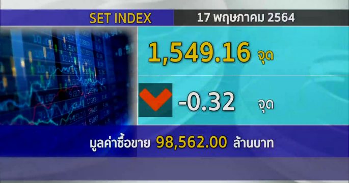 ตลาดหลักทรัพย์ปิดวันนี้ที่ระดับ 1,549.16 จุด ลดลง 0.32 จุด (-0.02%) มูลค่าการซื้อขาย 98,562.00 ล้านบาท รับแรงกดดันโควิดในประเทศระบาดหนัก-MSCI ปรับลดน้ำหนักหุ้นไทย