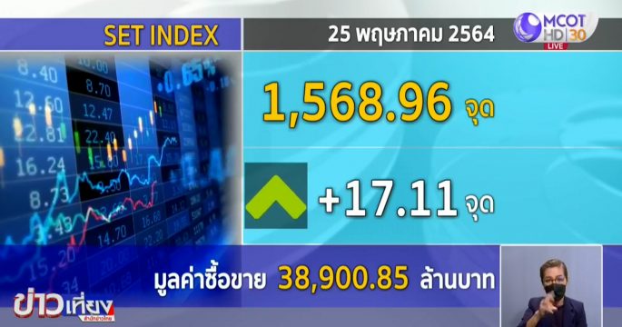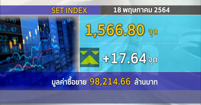 ตลาดหุ้นไทยวันนี้ เปิดมาสดใส ช่วงเที่ยงบวกไป 17.11 จุด ดัชนีอยู่ที่ 1,568.96 จุด มูลค่าการซื้อขาย 38,900.85 ล้านบาท ได้แรงหนุนจากตลาดหุ้นภูมิภาคเอเชีย และราคาน้ำมันดิบพุ่งถึง 3.9% เป็นปัจจัยหนุนหลักให้กับหุ้นกลุ่มพลังงาน ผลพวงจากการฉีดวัคซีนโควิด-19 ในวงกว้างทั่วโลก ทำให้เศรษฐกิจกลับมาฟื้นตัวได้เร็ว