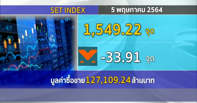 ตลาดหลักทรัพย์ปิดวันนี้ที่ระดับ 1,549.22 จุด ลดลง 33.91 จุด (-2.14%) มูลค่าการซื้อขาย 127,109.24 ล้านบาท เทขายบิ๊กแคปหวั่น เศรษฐกิจไทยโตแย่กว่าคาดหลังโควิดระบาดหนัก