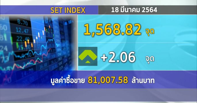 หุ้นไทยวันนี้เปิดตลาดเป็นบวก และล่าสุดเคลื่อนไหว ที่ 1,568.25 จุด บวก 1.89 จุด มูลค่าซื้อขาย 44,772.64 ล้านบาท รับผลบวกทั้งตลาดหุ้นต่างประเทศที่เป็นบวก และข่าวการประชุม ครม.ที่มีการพิจารณามาตรการกระตุ้นเศรษฐกิจ