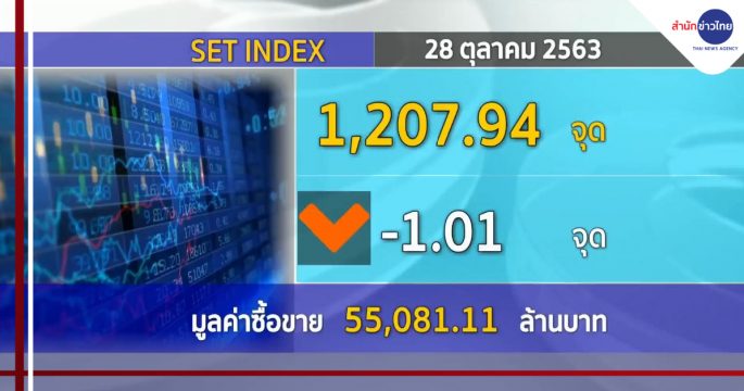 ดัชนีหุ้นไทยวันนี้ ปิดที่ระดับ 1,207.94 จุด ลดลง 1.01 จุด กังวลสถานการณ์โควิด-19 ในสหรัฐและยุโรป จะกระทบเศรษฐกิจ