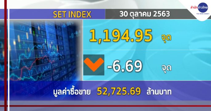 ดัชนีหุ้นไทยวันนี้ ปิดที่ระดับ 1,194.95 จุด ลดลง 6.69 จุด ตามต่างประเทศ กังวลการแพร่ระบาดโควิด-19 จะกระทบเศรษฐกิจ