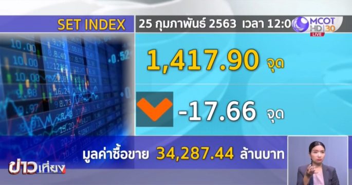 หุ้นไทยยังร่วงแรงต่อเนื่อง ตามทิศทางต่างประเทศกังวลไวรัสระบาดโควิด-19 ที่ขยายวงกว้างไปหลายประเทศ ทำให้มีแรงขายหุ้นขนาดใหญ่ ดัชนีภาคเช้าอยู่ที่ 1,392.90 จุด ลดลง 46.20 จุด มูลค่าซื้อขาย 38,669.55 ล้านบาท