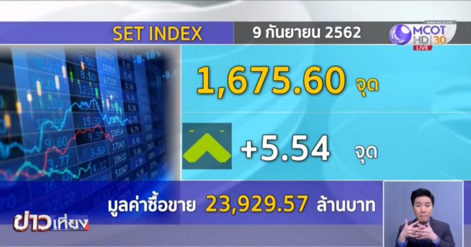 ดัชนีหุ้นไทยบวกได้เล็กน้อย หลังมีข่าวดีสหรัฐ-จีนเตรียมเจรจาการค้ารอบใหม่ต้นเดือนหน้า และการคาดการณ์แนวโน้มดอกเบี้ยที่จะลดลงของธนาคารกลางยุโรปและธนาคารกลางสหรัฐ