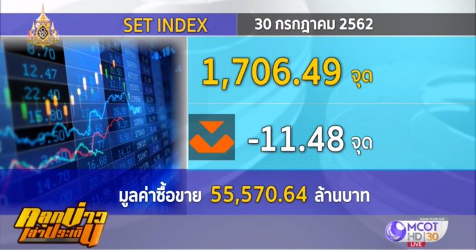 หุ้นไทยร่วงกว่า 11 จุด สวนทางภูมิภาค ผิดหวังผลประกอบการกลุ่มปิโตรเคมี-โรงกลั่น จับตาผลประชุมเฟด ดัชนีตลาดหลักทรัพย์ฯ ปิดวันนี้ (30 ก.ค.) ที่ระดับ 1,706.49 จุด ลดลง 11.48 จุด