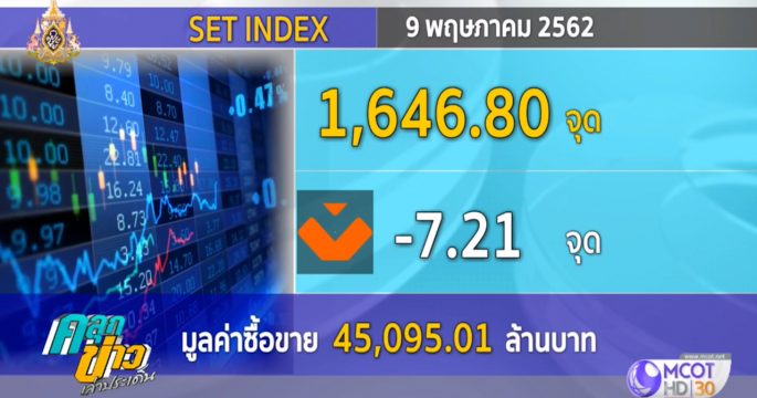 หุ้นไทยปิดวันนี้ที่ระดับ 1,646.80 จุด ลดลง 7.21 จุด มูลค่าการซื้อขาย 45,095.01 ล้านบาท