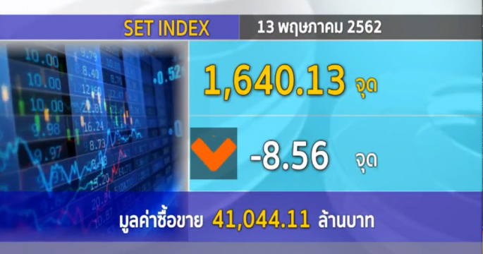 ตลาดหลักทรัพย์ปิดวันนี้ที่ระดับ 1,640.13 จุด ลดลง 8.56 จุด มูลค่าการซื้อขาย 41,044.11 ล้านบาท