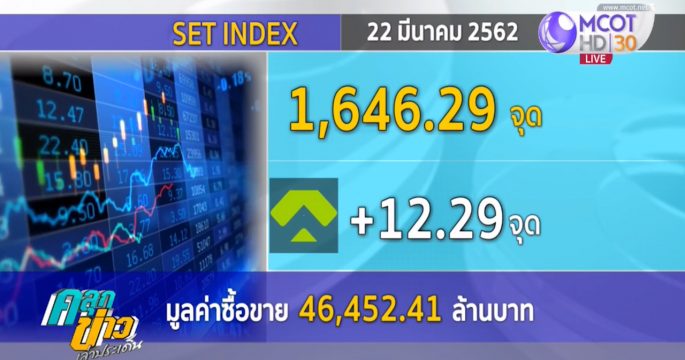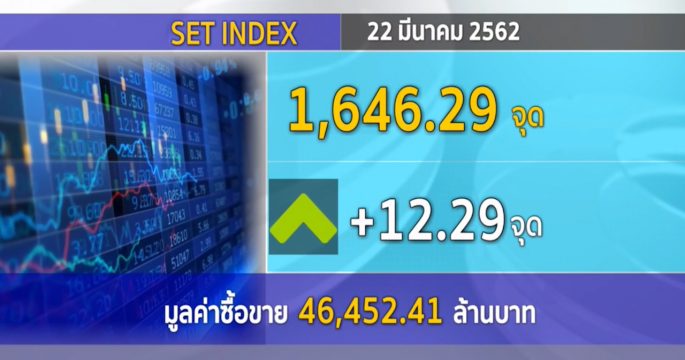 ตลาดหุ้นไทย (22 มี.ค.) ปิดการซื้อขายที่ 1,646.29 จุด บวก 12.29 จุด มูลค่าการซื้อขาย 46,452.41 ล้านบาท
