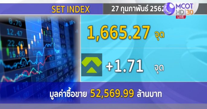 ดัชนีวันนี้ปรับตัวขึ้นไปได้ 1.71 จุด อยู่ที่ 1,665.27 จุด มูลค่าการซื้อขาย 52,569.99 ล้านบาท