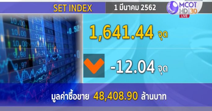 ตลาดหุ้นไทยปรับลดลงไป 12.04 จุด ดัชนีอยู่ที่ 1,641.44 จุด มูลค่าการซื้อขาย 48,408.90 ล้านบาท