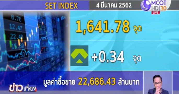 ตลาดหุ้นเคลื่อนไหวในภาคเช้า 1,641.78 จุด บวกขึ้นมาได้ 0.34 จุด มูลค่าการซื้อขาย 22,686.43 ล้านบาท