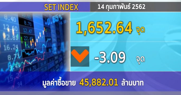 ตลาดหุ้นไทย (14 ก.พ.) ปิดการซื้อขายที่ 1,652.64 จุด ลบ 3.09 จุด มูลค่าการซื้อขาย 45,882.01 ล้านบาท