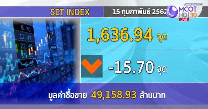 ตลาดหุ้นไทย (15 ก.พ.) ปิดการซื้อขายที่ 1,636.94 จุด ลบ 15.70 จุด มูลค่าการซื้อขาย 49,158.93 ล้านบาท