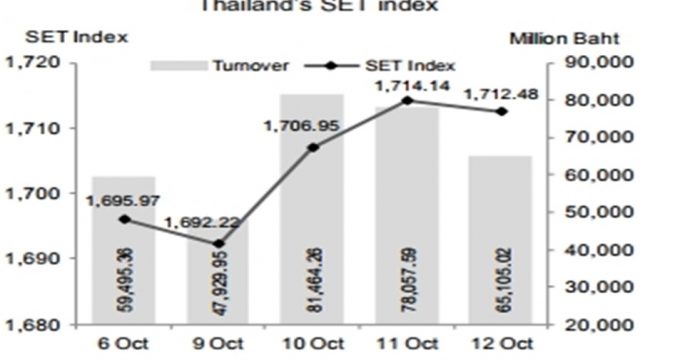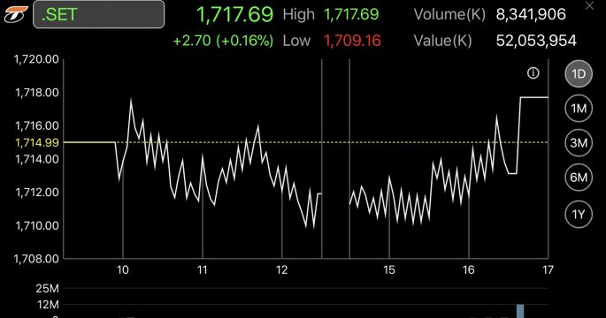 ตลาดหลักทรัพย์ฯ ปิดวันนี้ที่ระดับ 1,717.69 จุด เพิ่มขึ้น 2.70 จุด หรือ ร้อยละ 0.16 มูลค่าการซื้อขาย 52,053.95 ล้านบาท