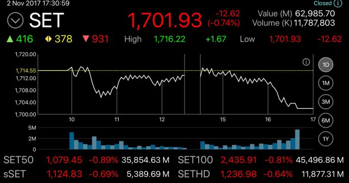 หุ้นไทย เคลื่อนไหวแคบ ๆ ลดลง 4.35 จุด บลจ.วรรณ คาดหุ้นไทยปี 61 มีโอกาสลุ้น 1,884 จุด