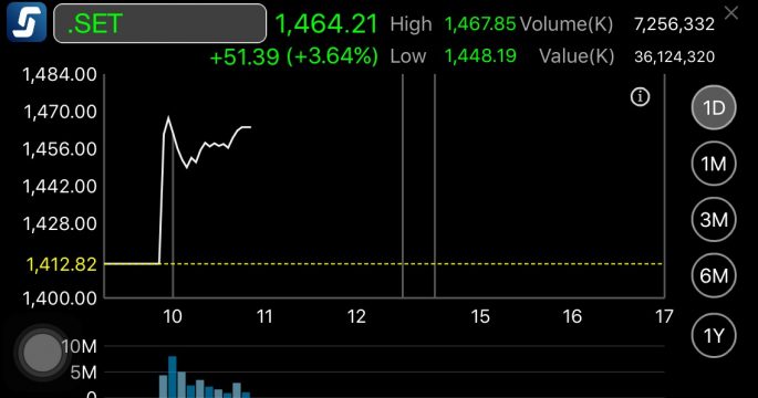 หุ้นไทยปรับขึ้นแรง นักลงทุนซื้อหุ้นขนาดใหญ่
