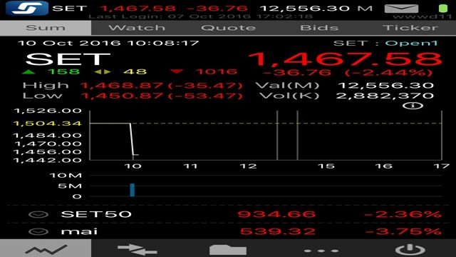 ดัชนีหุ้นไทยลดลงไปมากที่สุดกว่า 50 จุดในช่วงเช้าที่ผ่านมา จากความกังวลปัจจัยในประเทศ