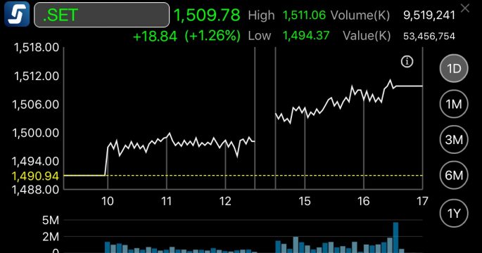 หุ้นไทยพุ่ง 18.84 จุด แรงซื้อหุ้นขนาดใหญ่ เก็งกำไรผลประกอบการแบงก์ไตรมาส 3/59