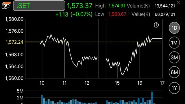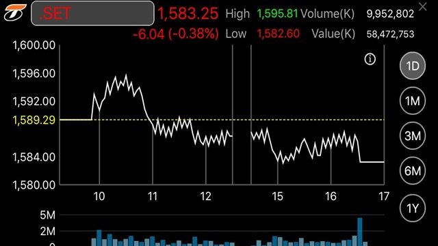 หุ้นไทยสดใส ดัชนีปรับขึ้น 6.77 จุด พยายามทดสอบระดับ 1,600 จุด คาดแรงหนุนจากงบการเงินและการปันผล