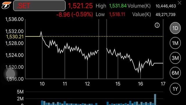 ดัชนีหุ้นไทยร่วง 10.75 จุด กังวลเหตุรุนแรงในต่างประเทศ ประกอบกับเงินบาทอ่อนค่าสุดในรอบ 11 เดือน