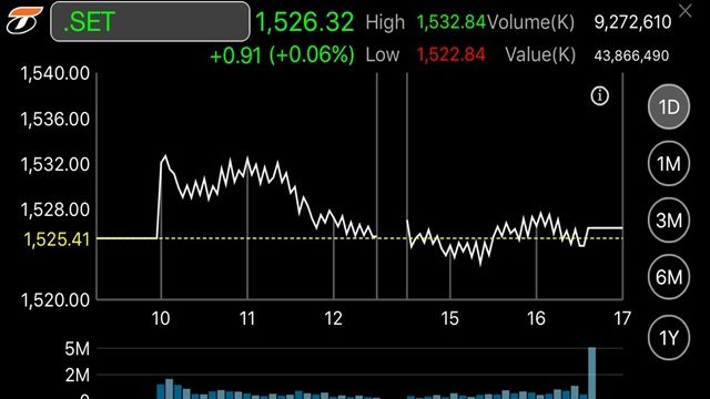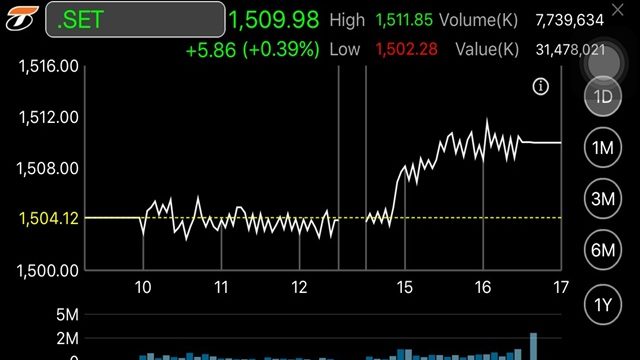 ดัชนีหุ้นไทยแกว่งตัวกรอบแคบ ๆ มูลค่าซื้อขายเบาบาง ตลาดไร้ปัจจัยใหม่ บวกเล็กน้อย 1.85 จุด