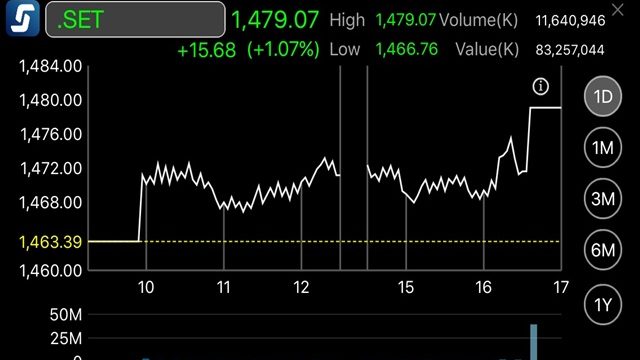 ตลาดหุ้นไทยฟื้นตัวต่อเนื่อง บวก 5.20 จุด ปิดที่ระดับ 1,463.39 จุด มูลค่าซื้อขายกว่า 43,700 ล้านบาท