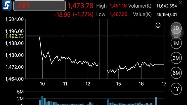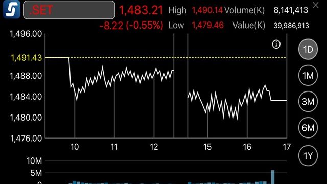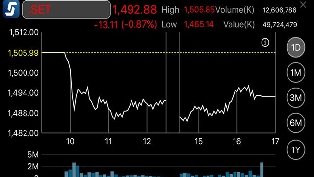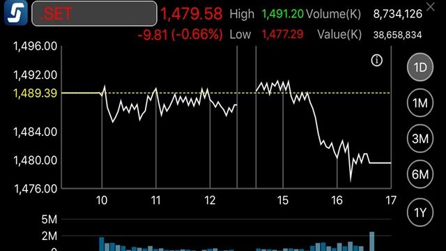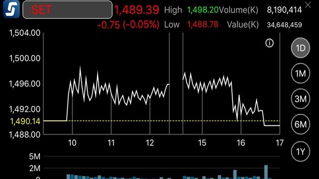 หุ้นไทยแกว่งตัว นักลงทุนติดตามการโต้วาทีชิงตำแหน่งประธานาธิบดีสหรัฐ ปิด 1,489.39 จุด ลดลง 0.75 จุด